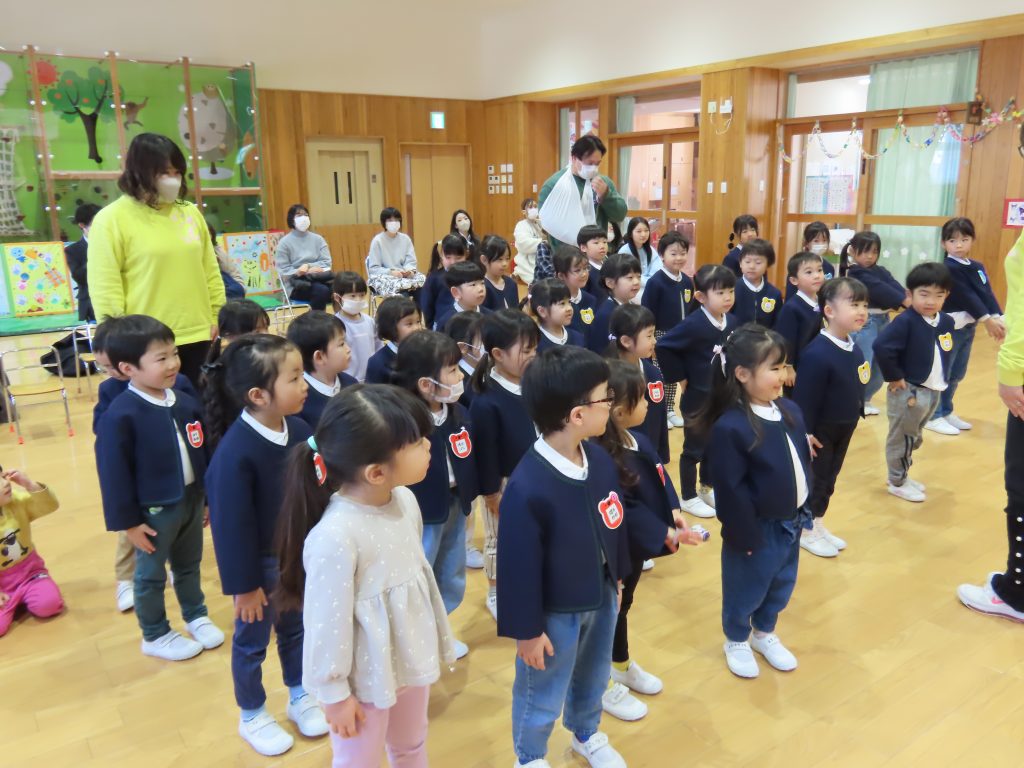 理事長先生のお話しは、あんぱんまんの絵を描いて、「生まれてきたいのちを大事に生きてね」と元気なこどもたちをほめてくれました。