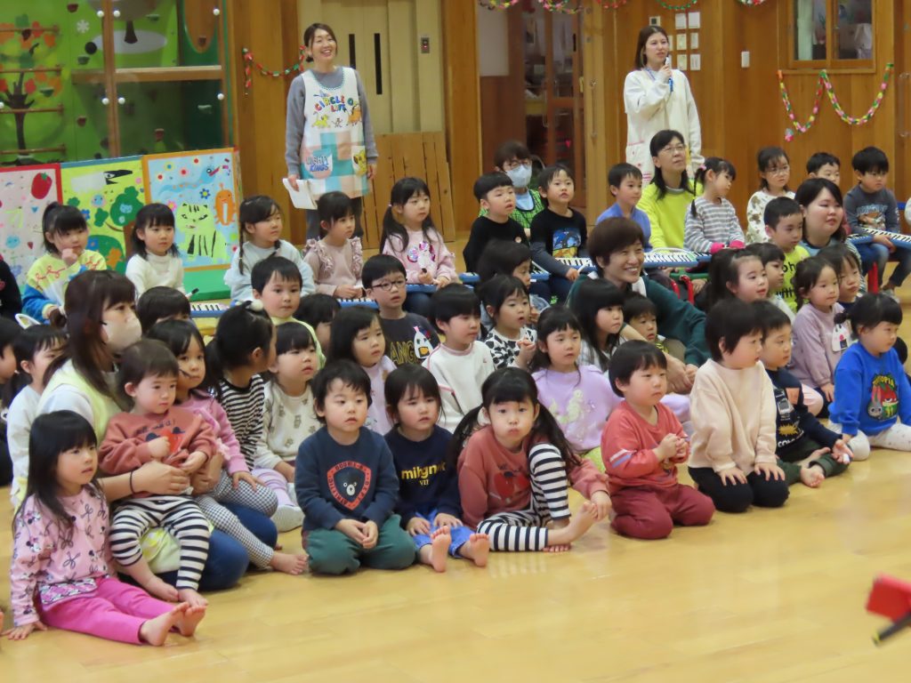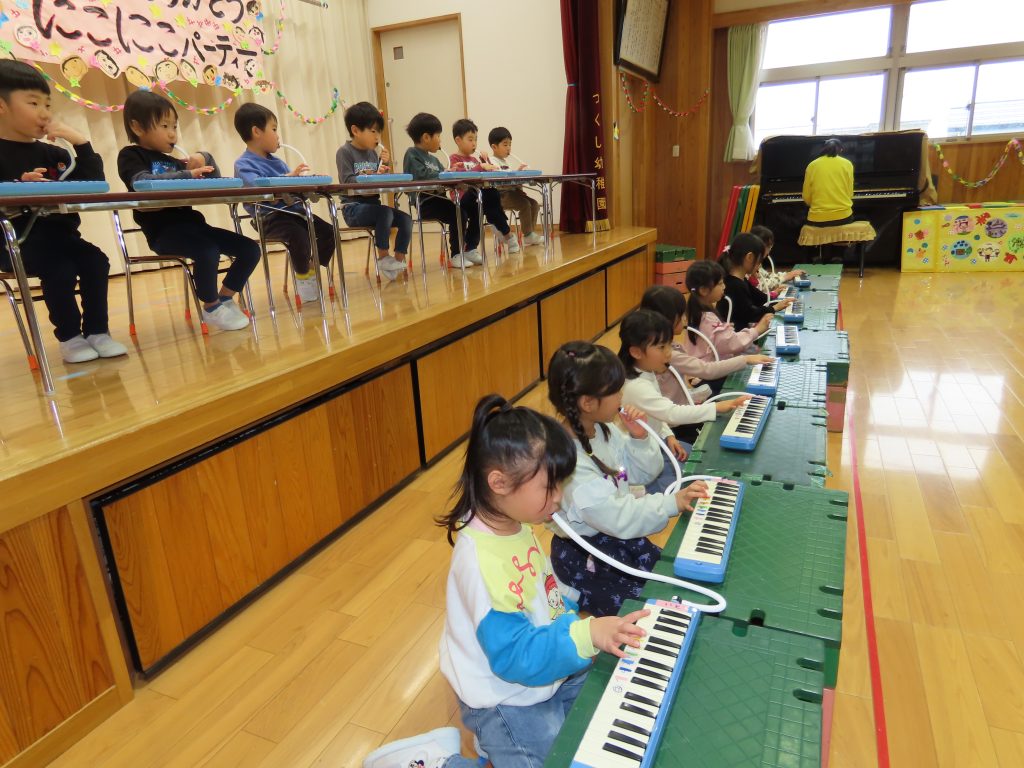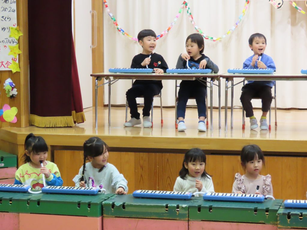 ピアニカを引き継いだゆり組が演奏しました。♪『トントントンひげ爺さん』『カエルの歌』『ドレミファソ♪』を発表です。