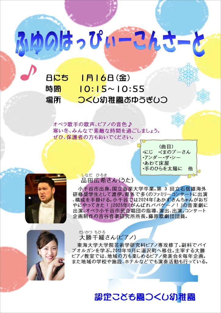 1月16日㈮ 「ふゆのはっぴぃーこんさーと」10:15~ (予約不要)